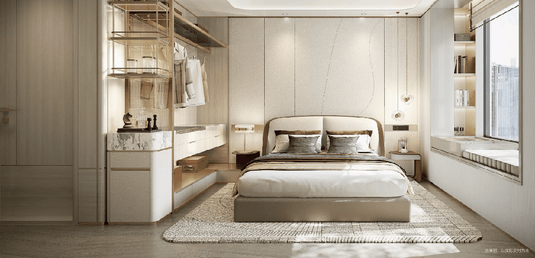 每个户型的主卧都是套房式设计,不仅面积大,功能也很齐全。尤其是110㎡的边套和139㎡的大户型,做了270°的L型飘窗设计,中环铂樾售楼处电话: VIPLINE☑东边看日出,西边看日落,南边看中庭,晚上还能望星空。