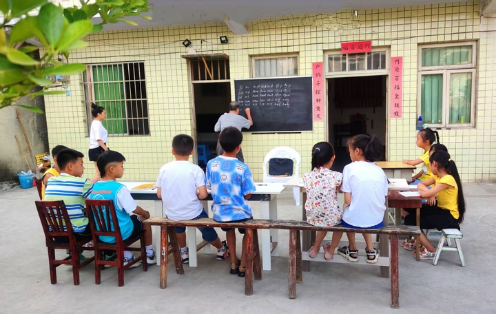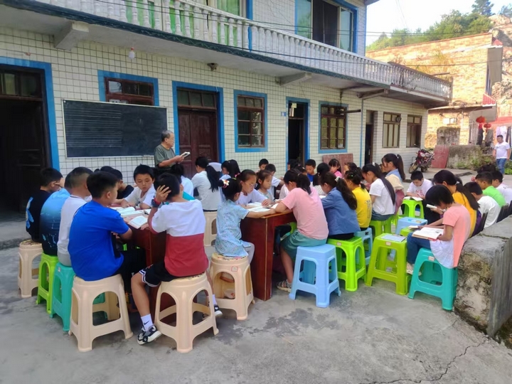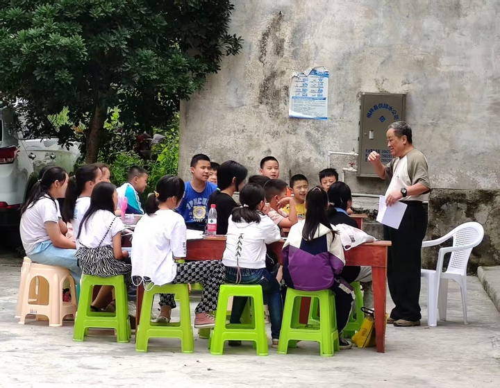 从零星几个孩子围坐桌前,到屋里坐不下移至走廊,再到院坝露天课堂,刘晓生的“坝坝英语”课堂阅读声越来越响亮。学生从小学生至高中生,人数最多的时候达到了120人。为求实效,他精心编排课程表,6天/周,每日4小时授课,强度远超退休前的教学。“当年也没教过这么多课,尤其现在70多岁,确实挺累的。”他坦言家人考虑到他的身体状况,曾多次劝导他要量力而行,但他从没忘记父亲的教导:“为人民服务。”今年,他的“坝坝英语”课堂已正式开课。