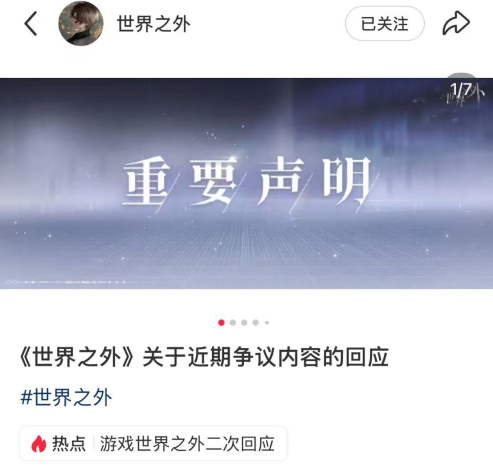 7月29号晚上11 点,世界之外又发了个公告,一条条正经回应了具体问题。或许是打算用真诚加正经,一点点化解舆情。